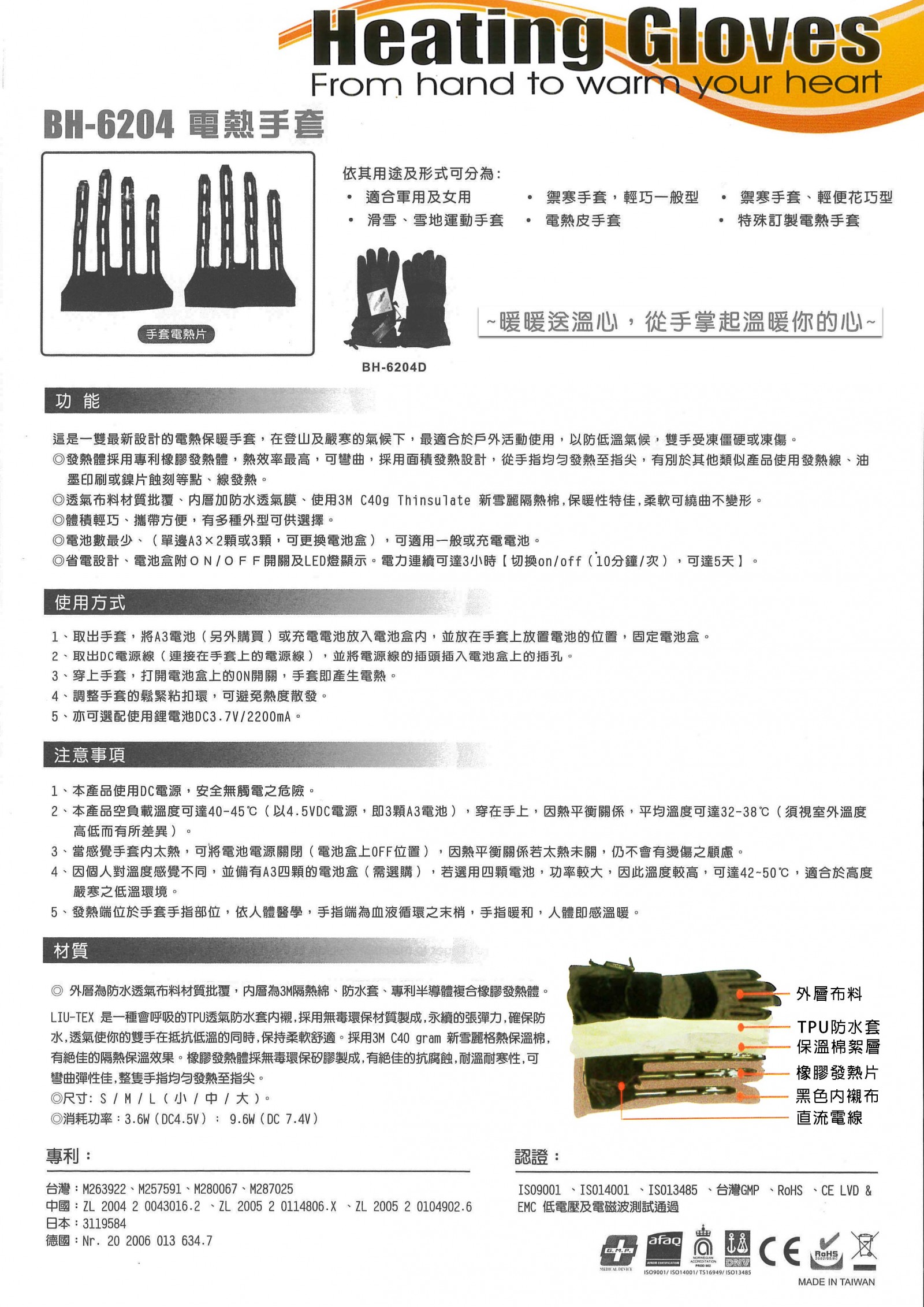 這是一雙最新設計的電熱保暖手套,在登山及嚴寒的氣候下, 最適合於戶外活動使用,以防低溫氣候,雙手凍僵或凍傷!