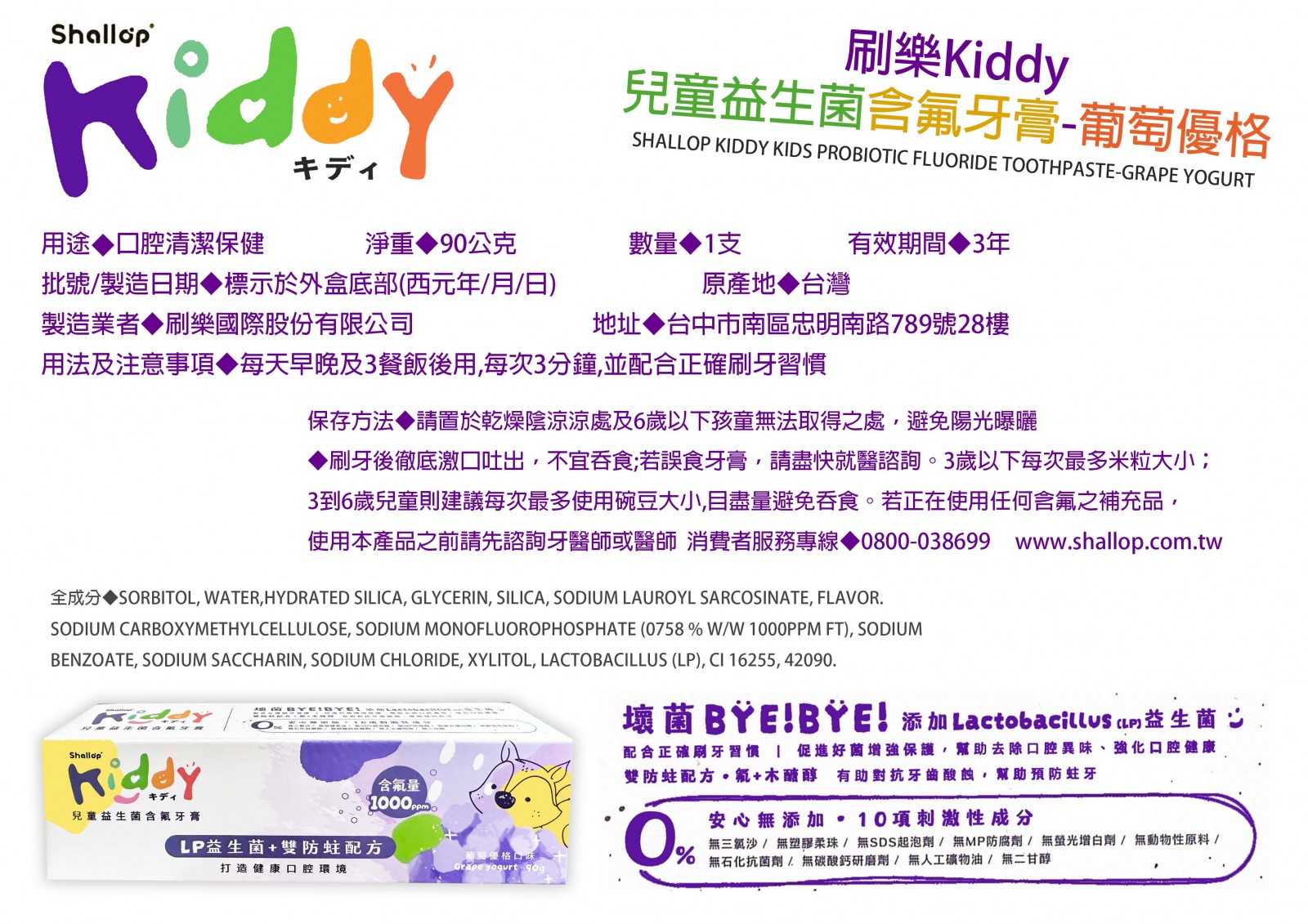 刷樂kiddy兒童益生菌含氟牙膏(葡萄優格)松鼠