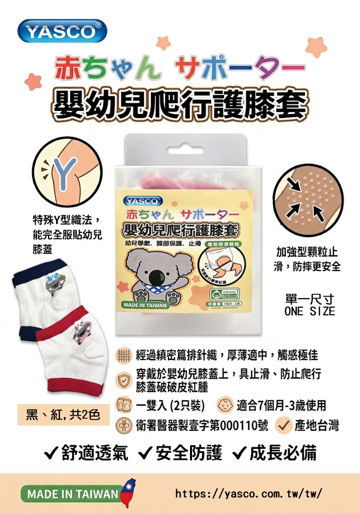 YASCO(昭惠)嬰幼兒爬行護膝套(紅、黑)