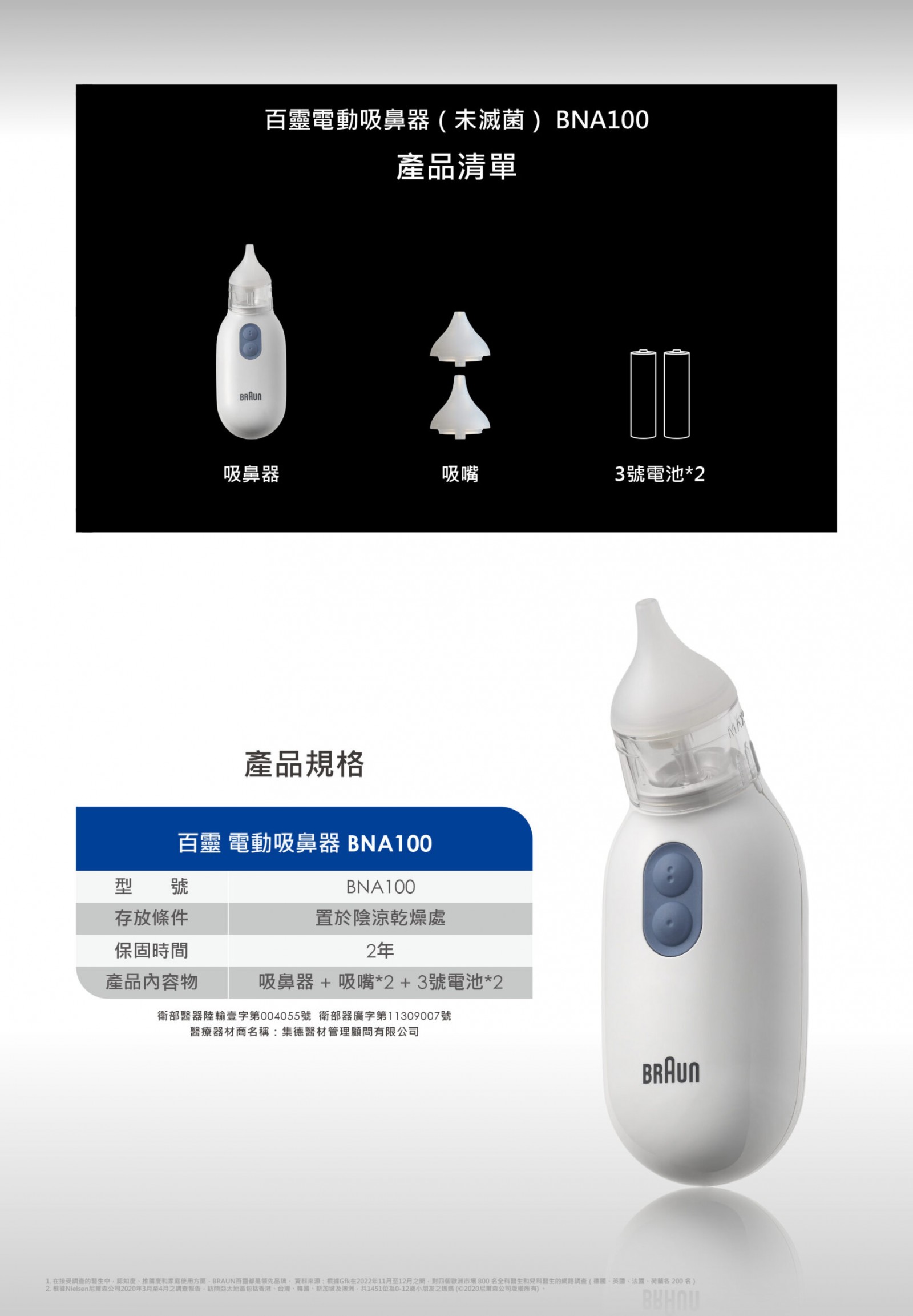 ◆醫療器材許可證所載品名:百靈電動吸鼻器 (未滅菌)